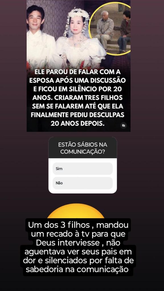 - A “Birra” de 20 anos: O silêncio começou após um desentendimento. Por orgulho, ele deixou de falar, mas continuou morando na mesma casa, trabalhando e agindo como pai, mesmo que respondesse à esposa apenas com acenos de cabeça ou sons.